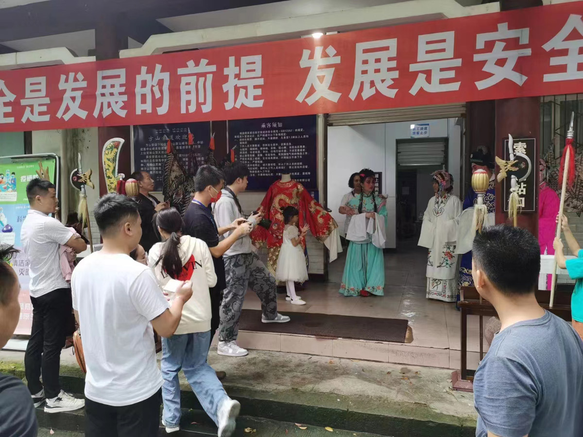 为促进文旅融合,传承弘扬中华优秀传统文化,提高全民非遗保护意识,泸州方山旅游投资有限公司下属子公司泸州市金桥游乐有限公司携手泸州市非遗所联合打造国内第一条融合川剧艺术的观光索道。缆车的车厢上有了“脸谱”的加持,别具一番风味,广大游客在游览景区的同时,感受到“泸州河”川剧的魅力。