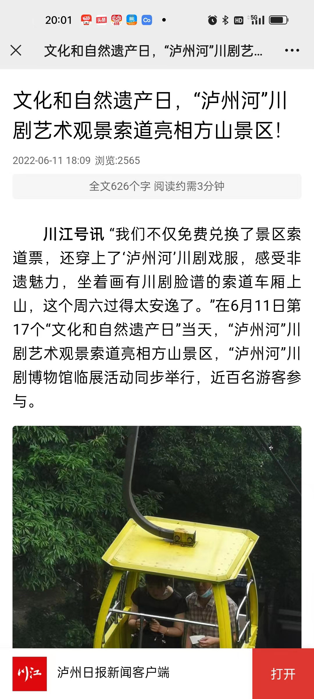 文化和自然遗产日,“泸州河”川剧艺术观景索道亮相方山景区