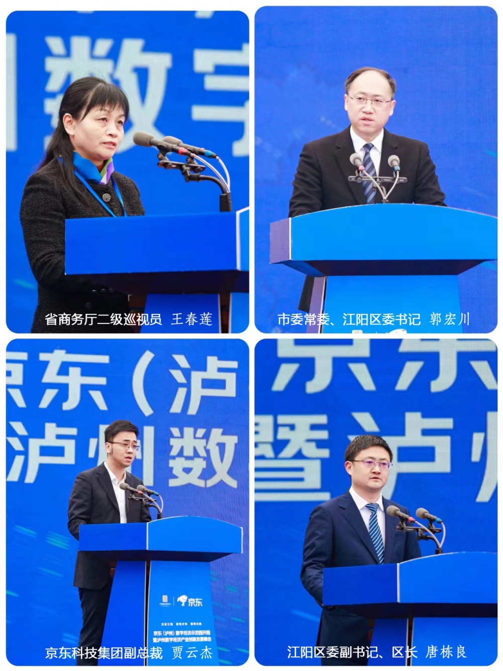 开园仪式由江阳区委副书记、区长唐栋良主持, 省商务厅二级巡视员王春莲、市委常委、江阳区委书记郭宏川、京东科技集团副总裁贾云杰出席仪式并致辞;