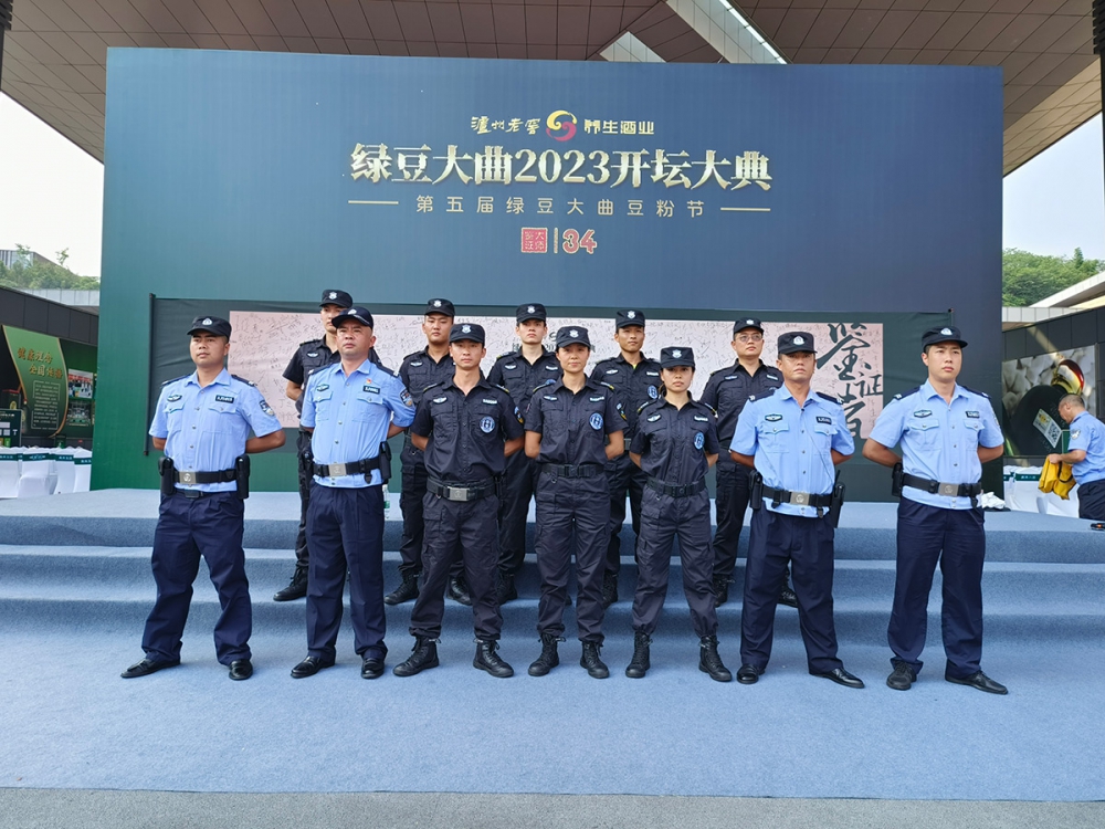 泸州老窖绿豆大曲2023开坛大典于2023年8月18日在黄舣国际酒业博览会中心举行,锦阳保安公司按照主办方的部署和要求,明确责任分工,定人定岗定责布位,全力以赴为本次活动做好安全保卫服务保障。