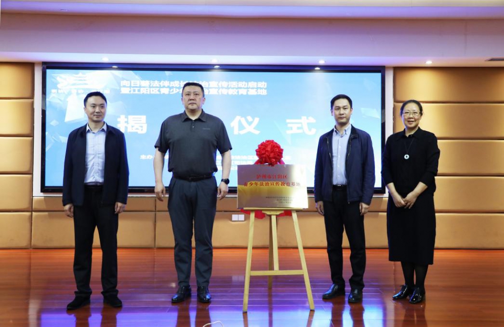 近日,江阳区图书馆举行了“向日葵”法伴成长法治宣传活动启动仪式暨江阳区青少年法治宣传教育基地揭牌仪式。此次活动由泸州市司法局党委委员、政治部主任李望霖,江阳区委常委、政法委书记张志方,区人大常委会副主任廖竞瑜等领导出席。