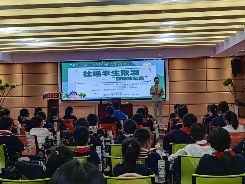 随后,四川荆冠律师事务所赵真真律师以“杜绝学生欺凌--别想欺负我”为主题,为参加活动的青少年们上了一堂生动的法治课。赵律师通过生动的案例和深入浅出的讲解,向同学们阐释了欺凌行为的定义、危害以及欺凌与校园暴力犯罪之间的关联。同时,就如何应对校园欺凌行为给出了具体的建议。此次讲座旨在引导广大青少年牢固树立法治意识、强化法治观念,养成自觉守法、遇事找法、解决问题靠法的思维习惯和行为方式,坚决防范和杜绝校园欺凌行为的发生,为青少年们营造一个和谐、安全的成长环境。