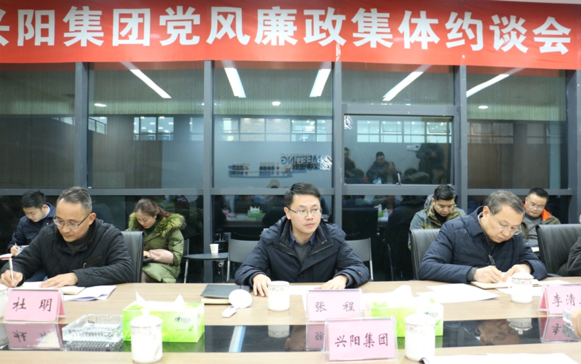 1月29日,区委常委、常务副区长张程,区人大副主任李清正在区府办、区纪委相关负责人的陪同下到兴阳投资集团对集团领导班子及全体中层干部进行党风廉政集体约谈。